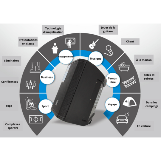 - Sortie XLR non amplifiée pour plug d’une enceinte supplémentaire