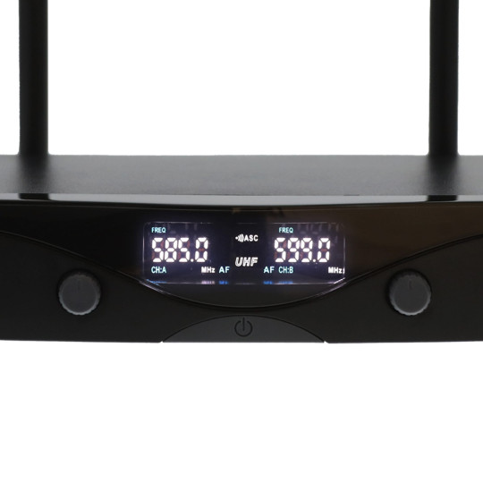 Double micro sans fil fournie avec un micro main et un serre-tête de type PLL multifréquences de chez Power Acoustics!