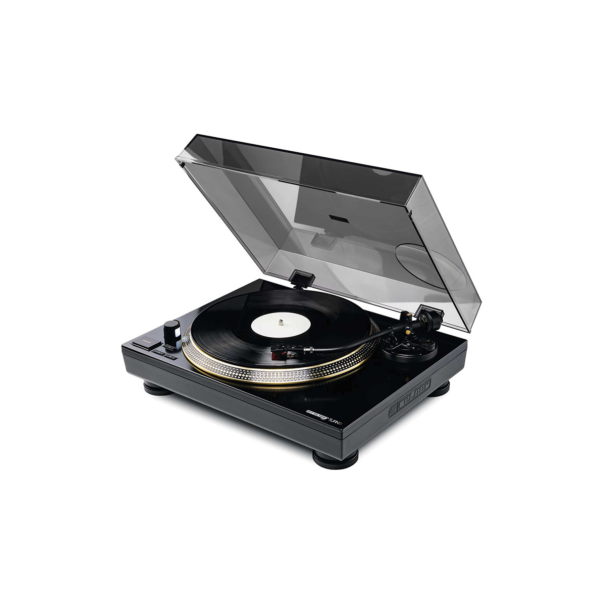 Cette platine vinyle reprend le design les éléments constitutifs de certaines platines professionnelles orientés pour une utilisation audiophile.