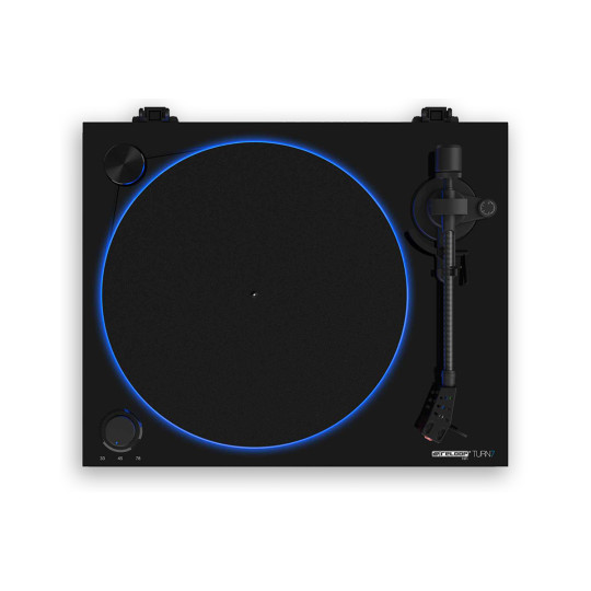 La platine vinyle Reloop TURN7 est une platine vinyle audiophile offrant des qualités musicales haut de gamme grâce à un moteur à faibles vibrations, un bras de lecture en carbone, un plateau en acrylique avec éclairage LED et une cellule Ortofon 2M Red.